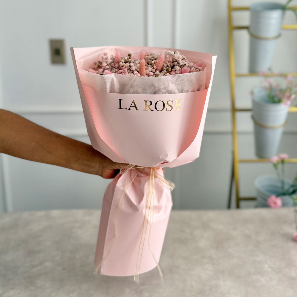 Un delicado arreglo de flores preservadas que combina gypsophilas y lagurus (orejitas de conejo), ideal para quienes aman lo sutil y duradero. No necesita agua y se mantiene intacto por meses. Gracias a su conservación especial, podemos enviarlo a cualquier parte del mundo. Un detalle eterno para decorar, regalar o recordar.